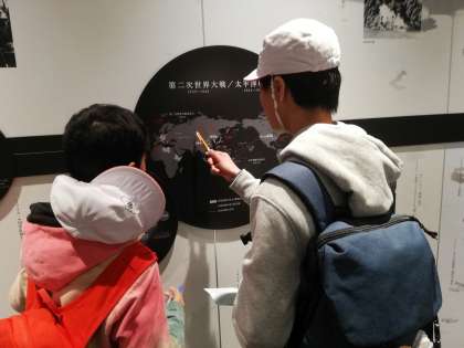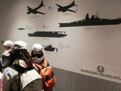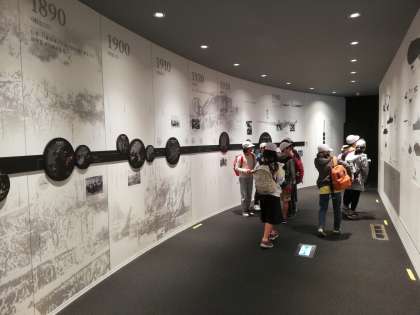 「ピースおおさか」の見学はグループで順路にしたがって進みます。