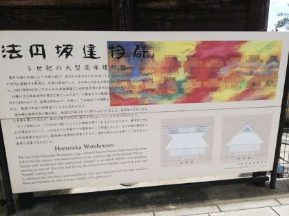 NHK 、古代の再建された高床式の建物前を通って移動です。