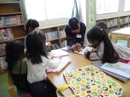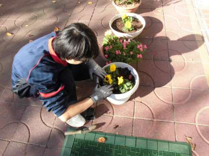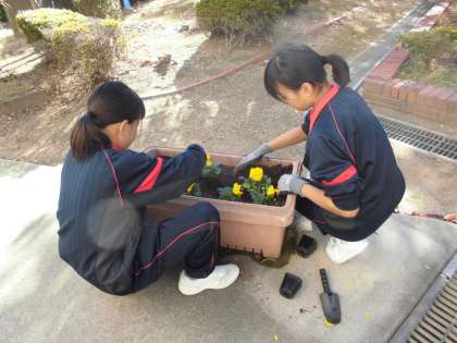 11月15日(金)、南港みなみ中学校の2年生の生徒の職場体験が2日目になりました。今日は花を植えたり、1年生に絵本を読んだり、学習の補助等、一生懸命に取り組んでいました。
