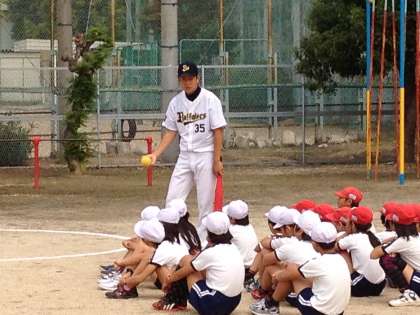 先日、オリックスバファローズと交流した4年生。教室前には、その時にいただいた選手のサインがはってあります。よくみると、エースの金子千尋選手のサインです。日本球界を代表する投手で、将来は大リーグでの活躍も予想される選手です。これは、お宝発見?