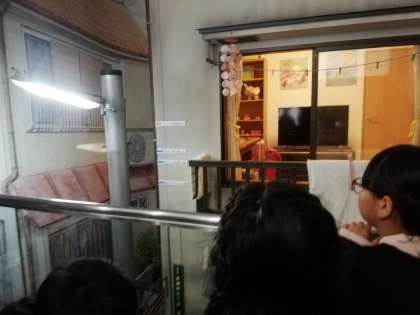 高潮の高さを展示の建物で確認しました。見学態度も良く、行き帰りの電車では進んで席を譲っており、他の乗客の方に「えらいなあ」と感心されていました。