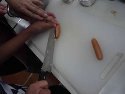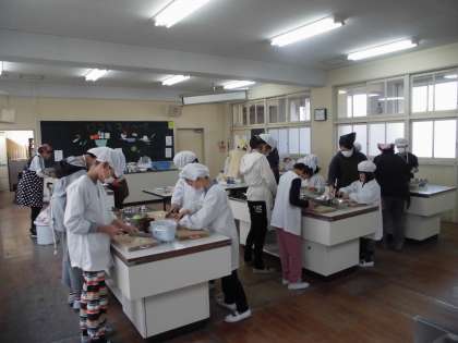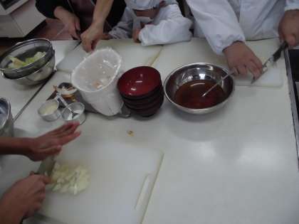 次は材料を切ります。丁寧な指導を受け、みんな上手にけがもなく切っていました。
