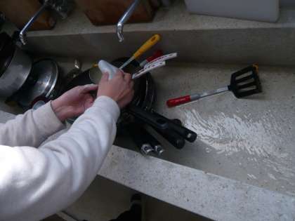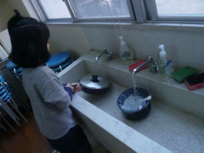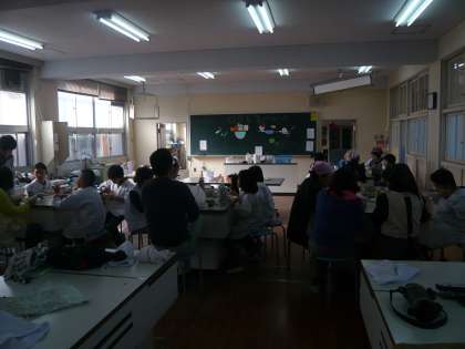 みんな食べるのをとても楽しみにしていました。味は…最高でした。ハンバーグもよく火が通り、ソースが味をよく引き立てていました。担当以外の教職員にも料理が提供され、みんな「おいしい」の満足した感想でした。後片付けも頑張っていました。