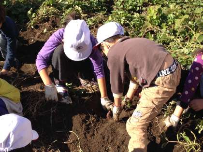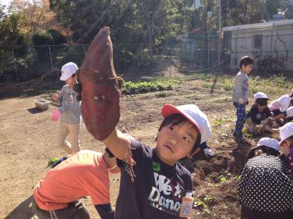 2年2組も、おいも掘り。子どもたちの手入れや夏の天候などが良かったのか、こんなにも大きくて、たくさんのおいもが出てきました。
