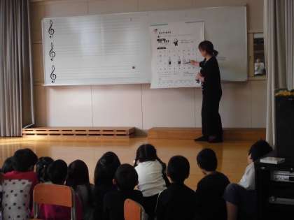 1月22日(水)、2年生が音楽の校内の研究授業を行いました。単元名は「日本のうたを楽しもう」で、わらべ歌を歌ったり手遊びを入れたりして楽しみました。子どもたちは「ずいずいずっころばし」等、昔から伝わる日本の歌を親しんで学習していました。最後は「なべなべそこぬけ」に合う伴奏を自分で考え、鍵盤ハーモニカで演奏をしていきました。歌や手遊び、手拍子、体での表現など、子どもたちはわらべ歌の世界にたっぷりと親しむことができ、充実した学習でした。