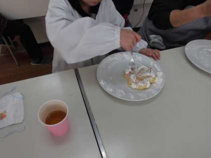 いよいよできあがりました。みんなで仲良く楽しくいただきました。味は言うことなしです。みんな協力してよい「ひまわりクッキング」になりました。