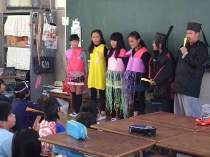 歴史学習で学んだことを寸劇などにまとめて発表しました。とても楽しく歴史をふりかえることができました。