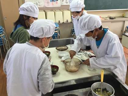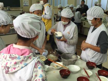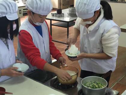 5年生は田おこし、田植えから稲刈り、脱穀をへて、お米の炊飯まできました。いよいよ最終章です。具だくさんな味噌汁と自分たちで育てたお米を炊きました。