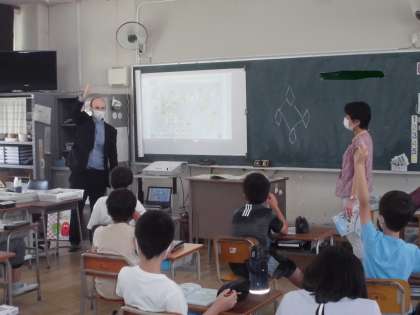 6月2日(火)、授業再開2日目です。午前班も午後班も真剣に学習に取り組み、授業中に巡回していても静かな雰囲気です。1年生は元気に手を挙げて張り切って学習に取り組んでいます。2年生も算数の問題をよく考えて解いていました。3年生は英語の学習です。英語の得意な先生とC−NETの先生がチームを組んで授業を進めていきます。子どもたちは楽しみながらしっかりと英語を学習しています。