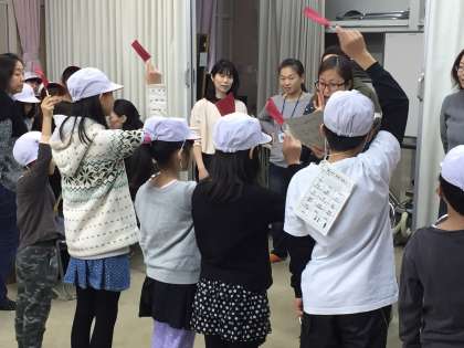 赤あげて!白あげないで、赤下げない!ひっかかる子が続出でした。うちわ運びは、慎重な子、スイスイといく子と、それぞれの個性が出ていました。