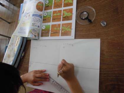 6月5日(金)の様子です。1年生は学習にも慣れてきました。今日はおはじきを使って算数の学習を進めていました。3年生は植物の種を丁寧に描いて学習していました。