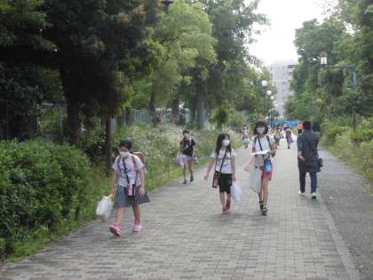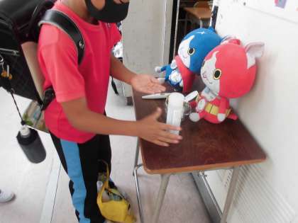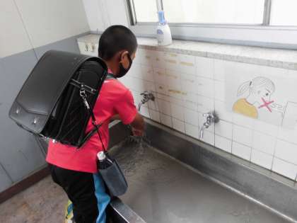 6月15日(月)、全市一斉に通常授業が開始しました。朝から大勢の児童が登校する光景は3か月半ぶりです。通常授業でもマスク着用で、手洗い、消毒をして教室に入ります。