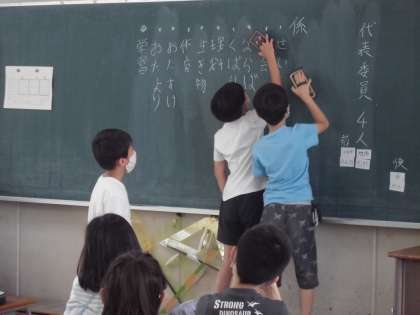 通常授業になり、全員そろっての活動が可能になりました。3年生、4年生は係りを決める話し合いをしました。3年生が植えた花の種が芽を出してきました。