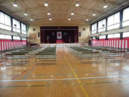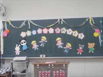 自分の好きなこと、好きなものを絵にかいて一人一人が発表しました。明日は入学式です。教室には保護者の方は行けませんが、1年生の為に教員が心を込めて黒板の掲示をしました。1年生は明日、きっとうれしい気持ちになるでしょう。講堂も準備完了です。1年生は、担任を先頭に真ん中の通路を通って入場します。天気予報では晴れるようで、みんなで温かくお祝いいたします。