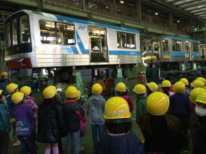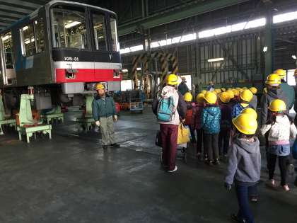 車両を分解して、点検・整備しているところを見学しました。近くで見ると迫力がありました。