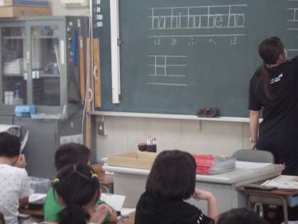 3年生はローマ字の学習です。パソコンでもよく使うので、表を見て確認しながら学習しました。