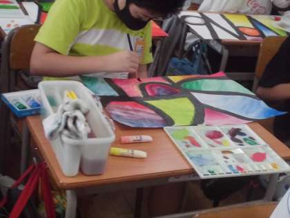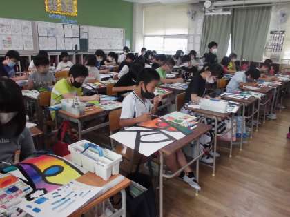 6年生は自分の名前をローマ字で描き、絵の具を使って着色しました。みんな静かに集中していて感心しました。2年生も近々、初めて絵の具を使って絵を描いていきます。子どもたちも楽しみにしています。