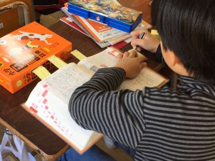 4年生は、去年から辞書引き学習を行っていました。だから、新しい辞書が届いてもスイスイと調べていきます。中学生になるころには、言葉の力が相当ついているでしょう。
