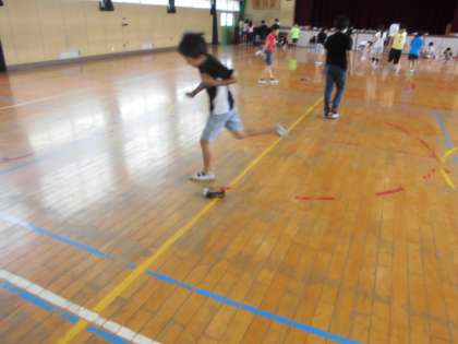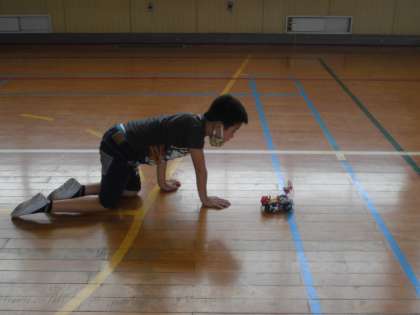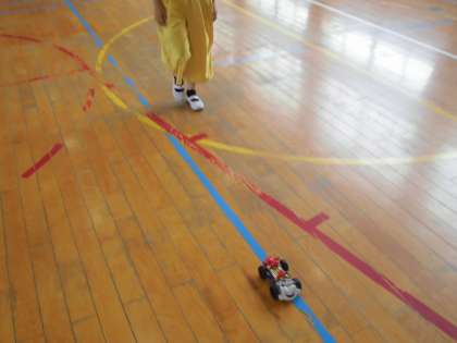 4年生は理科で作成していた電気自動車が完成しました。電気の仕組みも学習し、みんなで講堂で自動車を走らせました。スピードが速く、追いかけるのが大変でしたが、友達と競争するなど楽しい学習になりました。