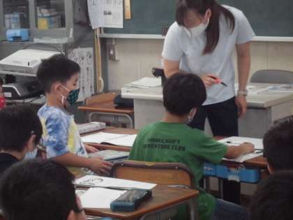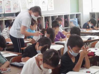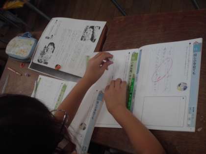 3年生は道徳の学習です。いつものように自分の考えをよくまとめてノートに書いて、担任に一人一人見てもらいました。