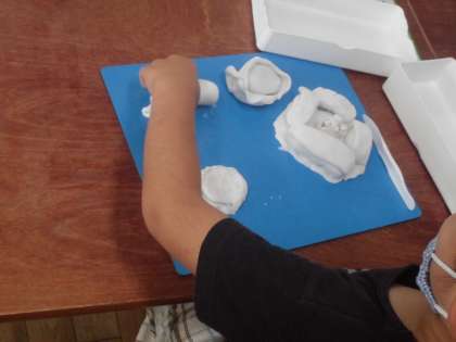 8月4日(火)、1年生は図工で粘土の学習です。「ごちそうパーティはじめよう」の題材で、子どもたちは思い思いのごちそうを粘土で作っていきました。おいしそうなごちそうが出来上がり、子どもたちもニコニコ笑顔です。