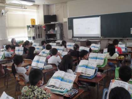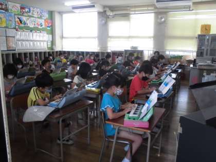 2年生は「かえるのがっしょう」の曲で、歌と鍵盤ハーモニカの練習をしました。正確に弾こうと懸命でした。
