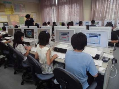 4年生はローマ字の学習を進めています。教室での学習の後、パソコンを使ってキーボードのローマ字打ちに挑戦しました。