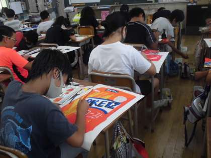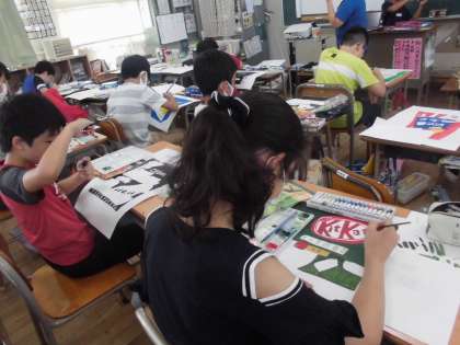 6年生は図工でパッケージの絵の続きです。どんどん絵が完成していき、パッケージによく似てきて感心です。ピーンと張りつめた静かな雰囲気で、子どもたちが集中していることがよくわかりました。