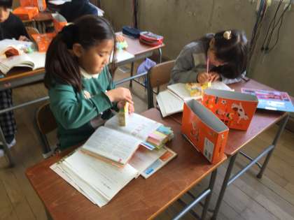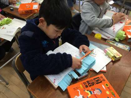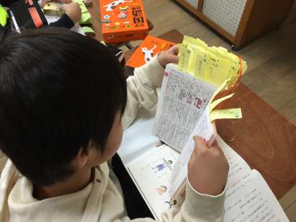 3年生は、同音異語を辞書で調べていました。「あつい」は、「厚い」「暑い」「熱い」「篤い」とたくさんの言葉があります。これも辞書の使い方ですね。