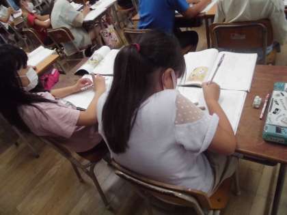 4年生は物語文「一つの花」の学習を始めました。戦争の時代を描いた物語で、お父さんの気持ち等を考えていきます。今日はCDの音読を聞いて、初めて聞く物語の感想を書いていきました。