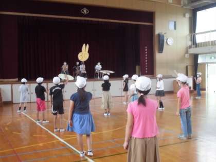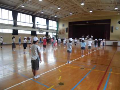 9月3日(木)、毎週の児童集会は4年生です。間を開けて並んで「ジャンボジャンケン」を楽しみました。ジャンケンに勝った時はうれしい歓声を上げていました。今日の担当は5年生の集会委員会です。