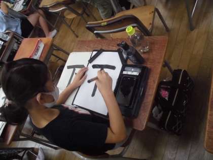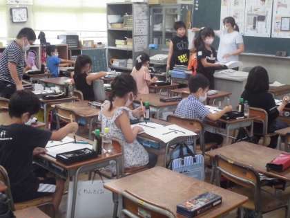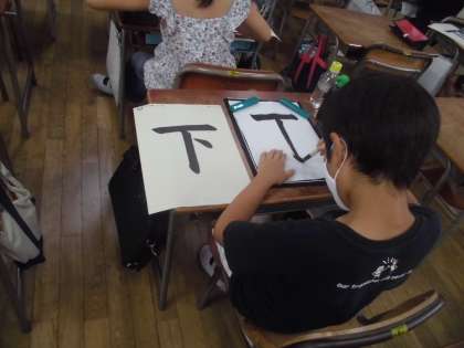 3年生は習字の学習で「下」の字を書きました。ていねいに書こうとする気持ちがよく伝わってきました。