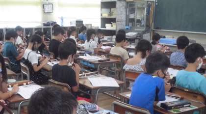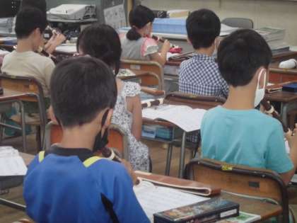 9月7日(月)、3年生は音楽でリコーダーの練習をしました。感染予防のため、一斉に吹くのではなく、グループに分けて吹いていきました。