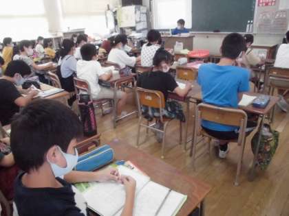 5年生の林間学習(9月12日・13日)が近づいてきました。しおりをもとに担任からの説明を真剣に聞いていました。充実した林間学習になり、思い出いっぱいになることを願っています。