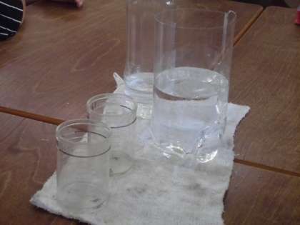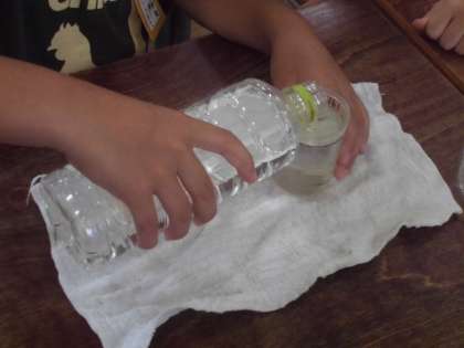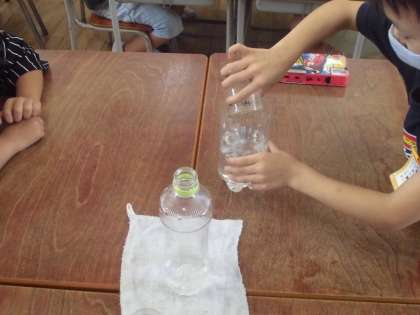 2年生は算数で㎗について学習しました。㎗ますを使ってペットボトルの水を容器に移しました。㎗の量感を作業を通して実感できました。
