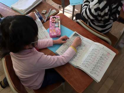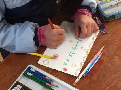 1年生の学習のふりかえりです。プリントをみて、できたこと、できなかったことを確かめていきます。そんな中で、楽しいクリスマスカードを作る時間もあります。