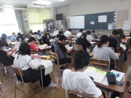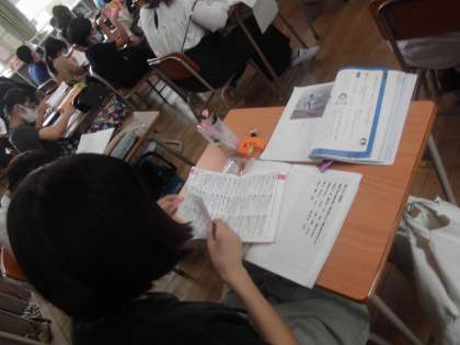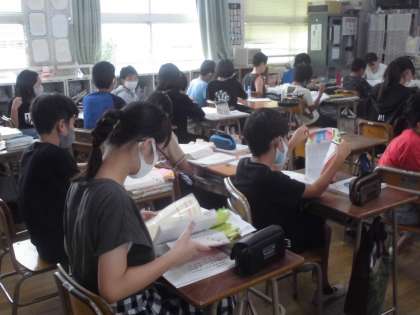 6年生は辞書を使って調べ学習です。熱心にページをめくり、懸命に調べていました。