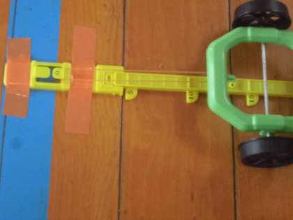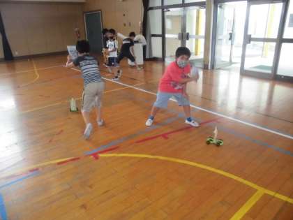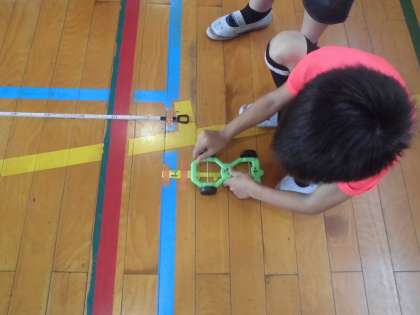 3年生は風やゴムで自動車を走らせました。今日は輪ゴムの反動で走らせる実験も行いました。写真ではわかりにくいですが、自動車の前に輪ゴムをかけ、後ろに引っ張って輪ゴムを伸ばして手を離すと、反動で勢いよく走りました。楽しみながら学習を進めていました。