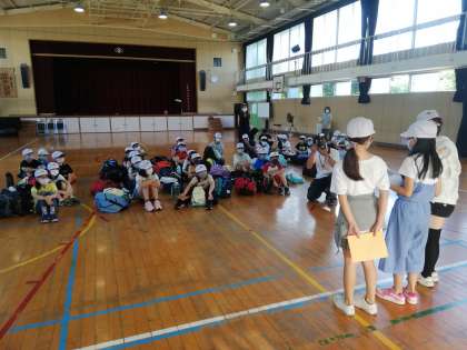 みんな時間通りに集合し、出発式を行いました。バスに乗り込み、いよいよ出発です。たくさんの保護者の方にお見送りいただきました。早朝からお越しいただき、ありがとうございました。
