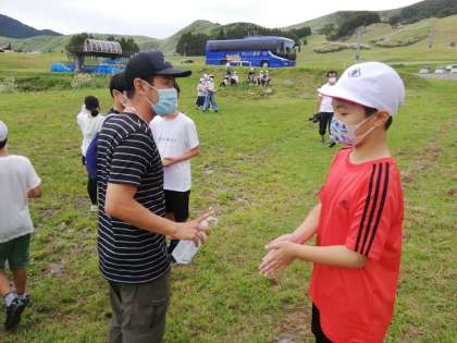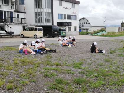 正午になったので昼食です。手洗い、消毒をして高原で食べます。