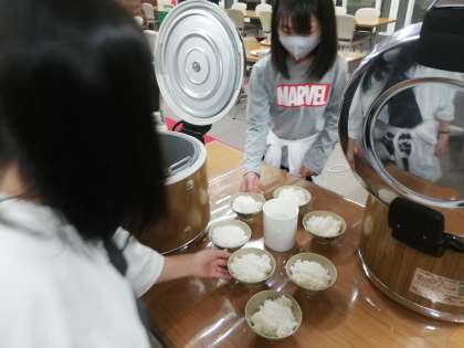 いよいよ夕食です。例年はグループ毎に鍋料理ですが、今年は感染対応で個食です。各自、自分のご飯を取りに行きます、美化兼食事係が「いただきます」のあいさつです。