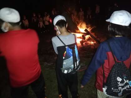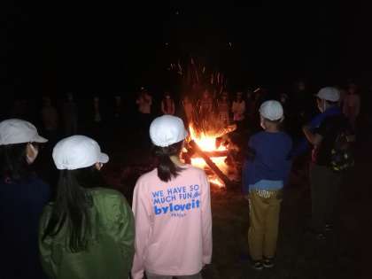 ゲームやクイズで盛り上がりました。キャンプファイアを終え、宿舎に戻るとまた小雨が降ってきました。運が良すぎる?