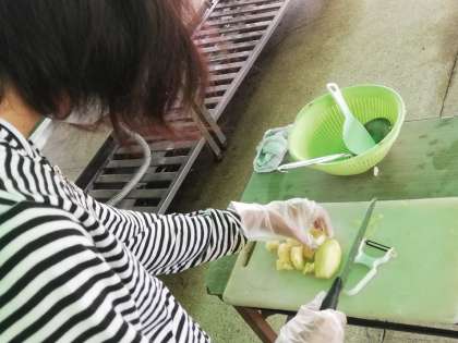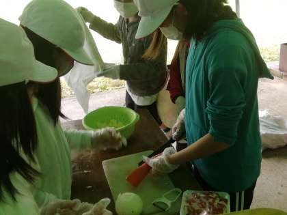 火をつけている間にカレーの材料を切ったり飯ごうの米の準備です。