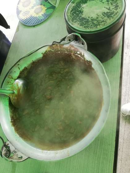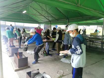 カレーライスの出来上がりです。うれしそうなワクワク感です。