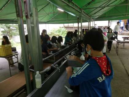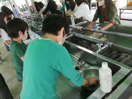 食べたあとは鍋や飯ごう、食器洗いです。作るだけでなく、片付けもしっかり協力していました。