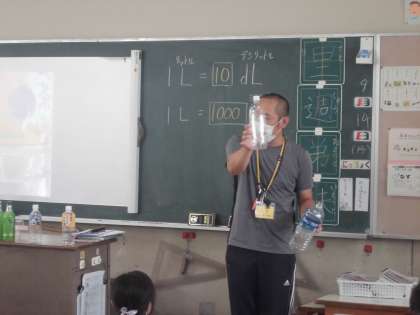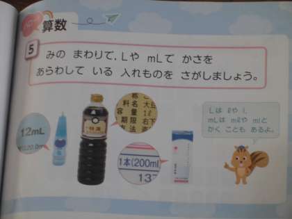 9月14日(月)、猛暑も収まってきて、朝夕は過ごしやすくなってきました。2年生は算数で「かさ」について学んでいます。今日は㎖について学習しました。身近なジュース等のペットボトルや缶の具体物のかさを知り、実際の量をイメージしました。写真のように缶に記載された㎖を確認していきました。家庭でジュース等のペットボトルや缶があれば、量を確認させてみるのもよい学習になります。