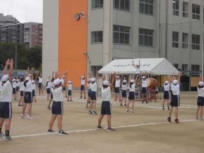 いよいよ運動発表会が今週末になりました。低・中・高学年部ともに、校旗、優勝旗、準優勝盾、児童会旗を先頭に入場し、初めの体操をします。次は「エール」で、応援団(6年生)の掛け声で自分たちを応援します。(「運動会」ではありませんので赤白に分かれての競技はしません)