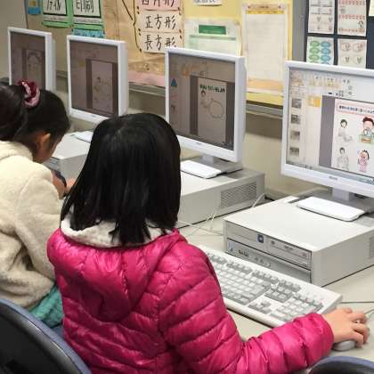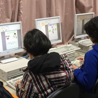 健康・美化委員会は、パソコンルームでポスター作りをしていました。パソコンに入っているツールを上手につかって、個性的なポスターに仕上げていました。
