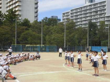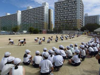運動発表会の日が近づいてきました。発表当日は従来の運動会のように全児童の発表を見ることができないので、今日はそれぞれの部の団体演技(ダンス)を鑑賞し合いました。まず、低学年(1年生・2年生)です。