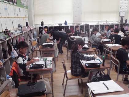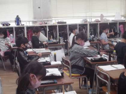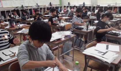 3年生は習字で「日」を書きました。いつものように心を落ち着けてていねいに書いていました。道具の使い方にもすっかり慣れてきました。